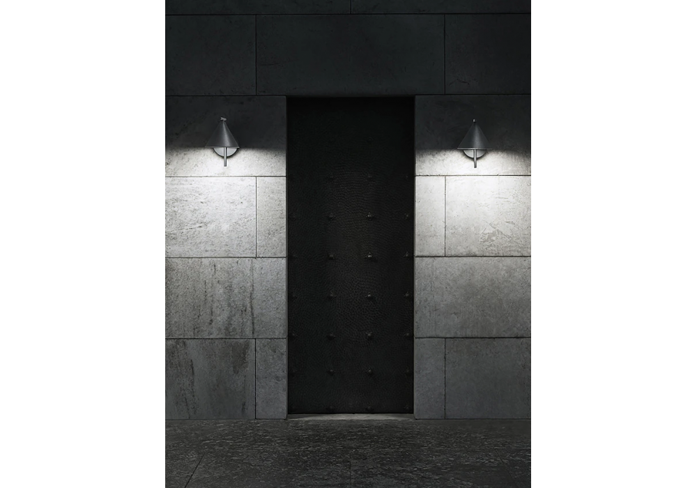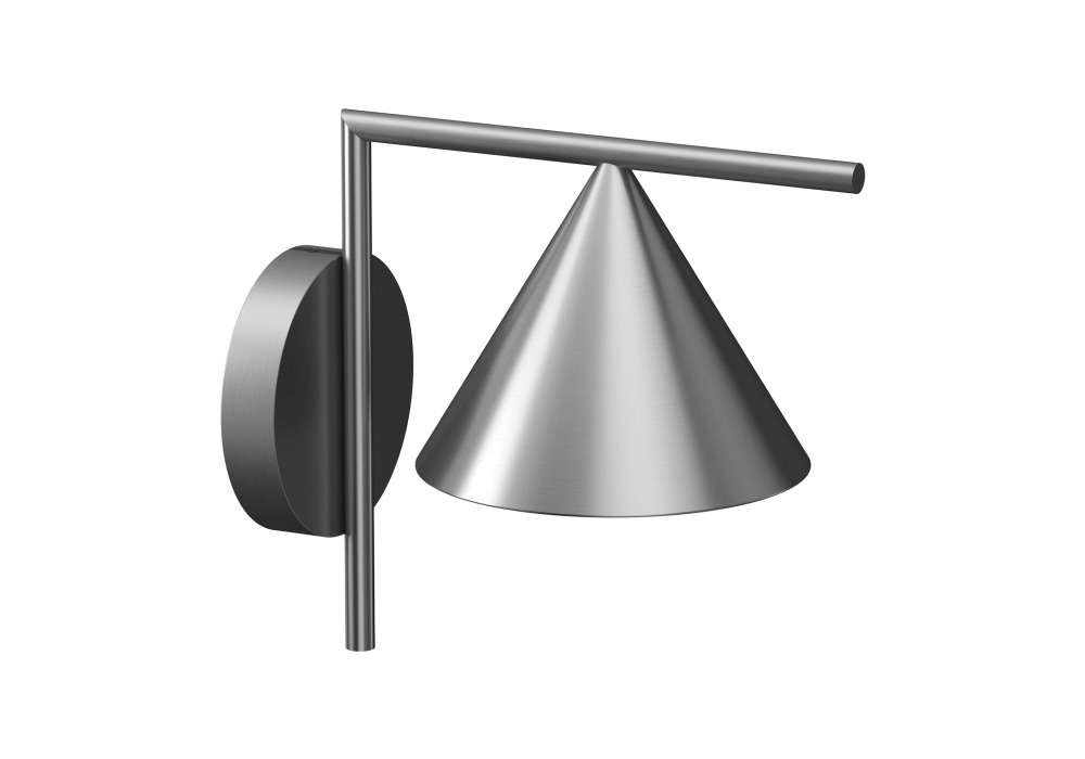 Captain Flint designed by Michael Anastassiades for Flos is an outdoor wall lamp with tunolar stainless steel structure with conical lampshade. The diffuser is made of opal polycarbonate and shields an LED light source with a dimmable system. Captain Flint is available in different finishes, light source shades and dimmer types.