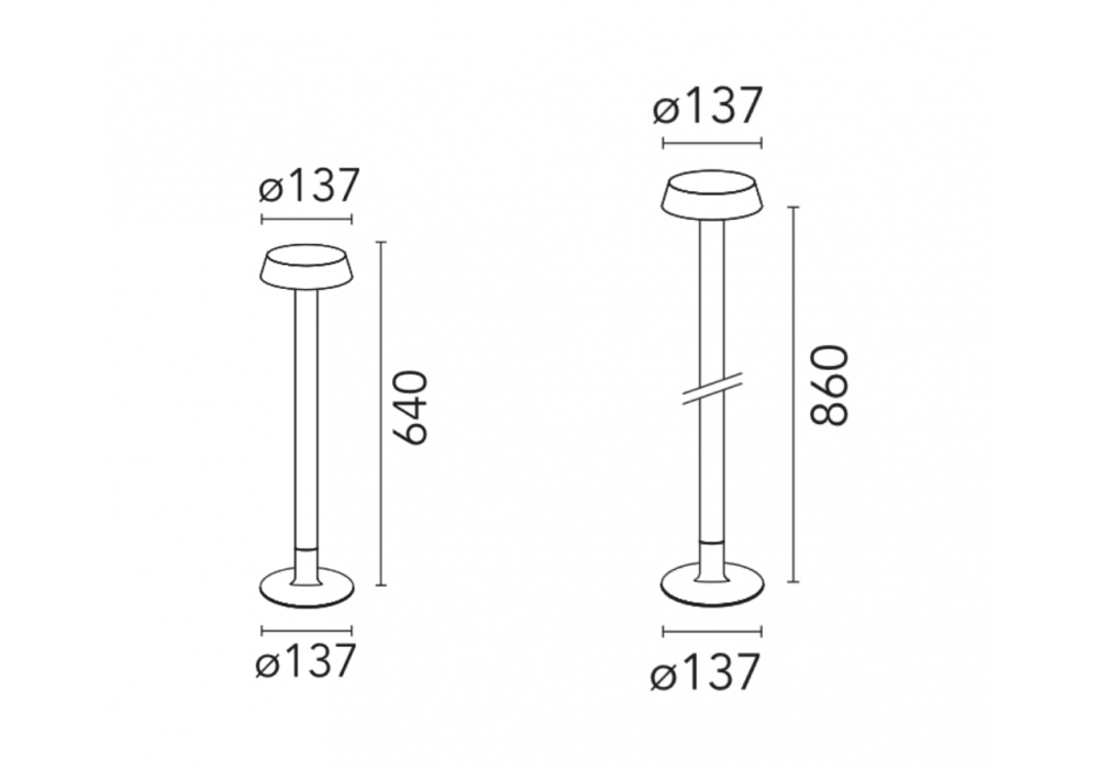 | Dimensions | Ø 13,7 x H 64 cm; Ø 13,7 x H 86 cm. |