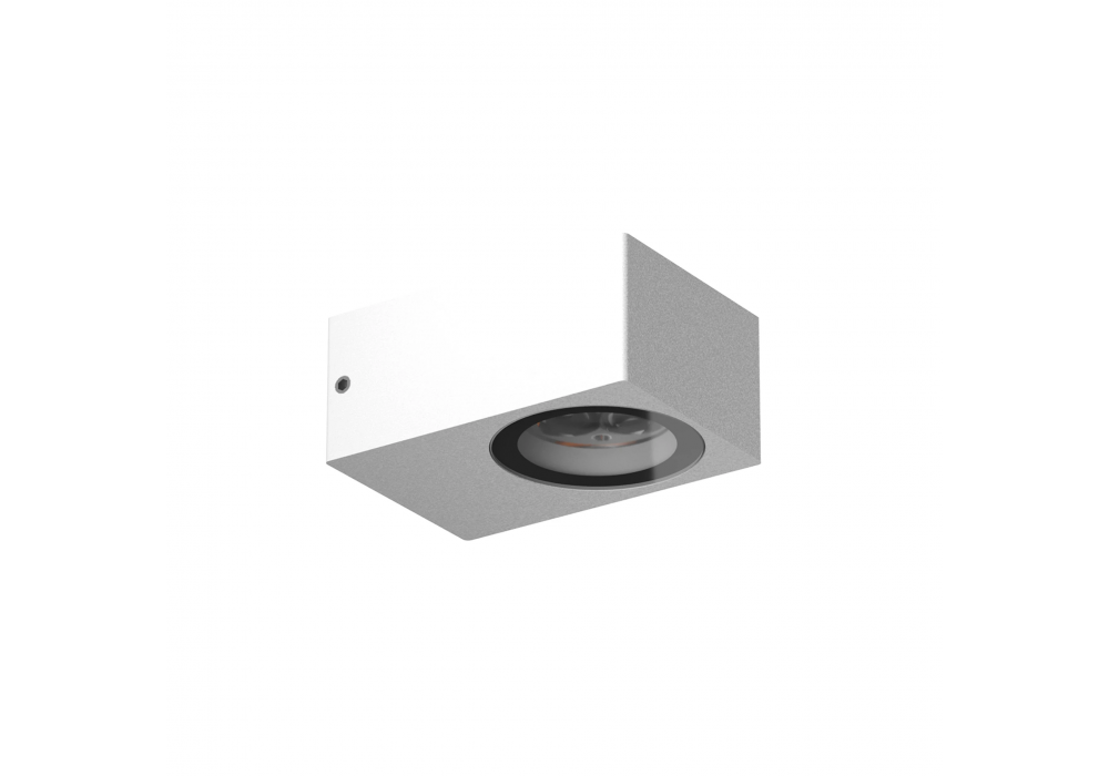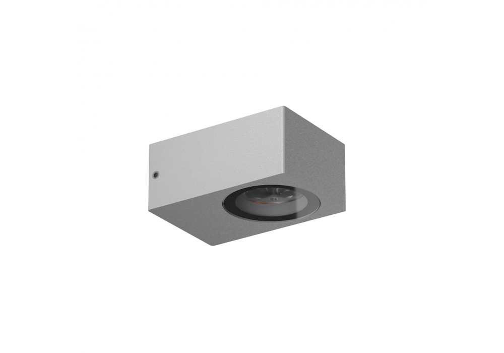 Heavy Metal HP 1 designed and produced by Flos is a wall lamp with a quadrangular shape structured by the combination of turned aluminum and stainless steel. The diffuser is in transparent glass with silk-screened edge, and houses an LED light source in different shades of light and versions.