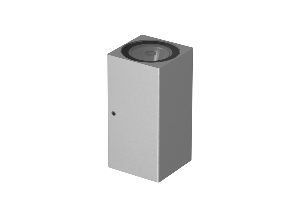 Heavy Metal 2 designed and produced by Flos is a wall lamp with a quadrangular shape structured by the combination of turned aluminum and stainless steel. The diffuser is in transparent glass with silk-screened edge, and houses an LED light source in different shades of light and versions.
