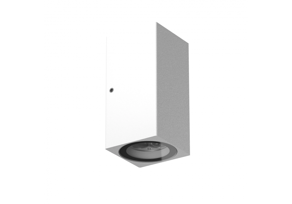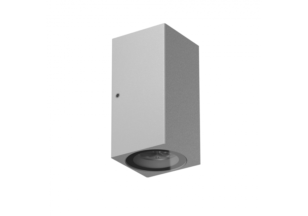 Heavy Metal HP 2 designed and produced by Flos is a wall lamp with a quadrangular shape structured by the combination of turned aluminum and stainless steel. The diffuser is in transparent glass with silk-screened edge, and houses an LED light source in different shades of light and versions.