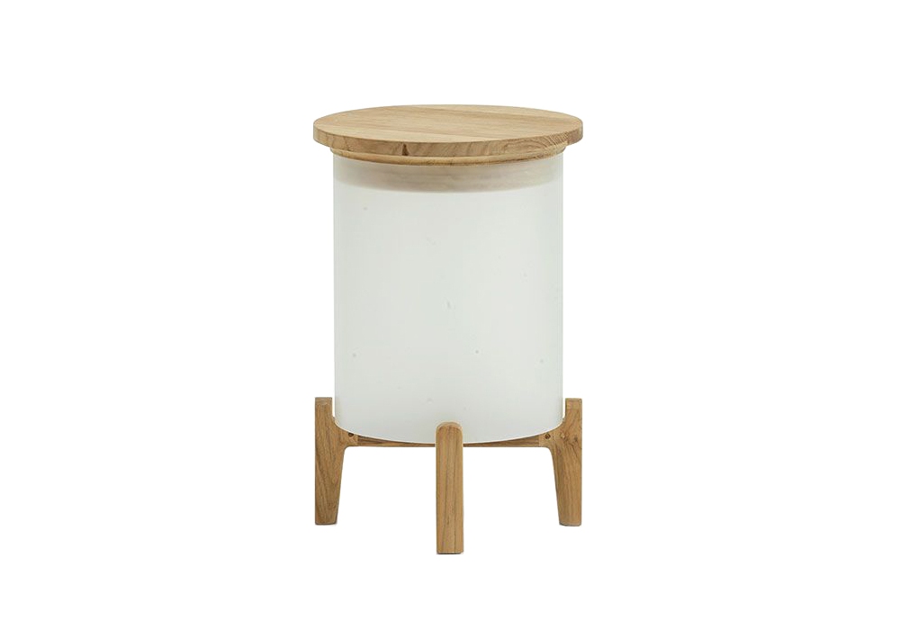 Shake designed by Emmanuel Gallina for Ethimo is a cylindrical floor lamp structured in natural teak and opaque plexiglas. The light source adopted is of the LED type, screened by an opaque Plexiglas diffuser. Shake is available in different sizes.