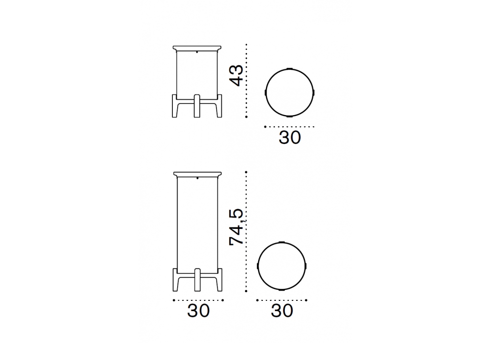 | Dimensions | Ø 30 x H 43 cm; Ø 30 x H 74,5 cm. |