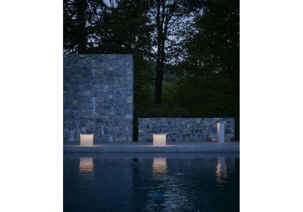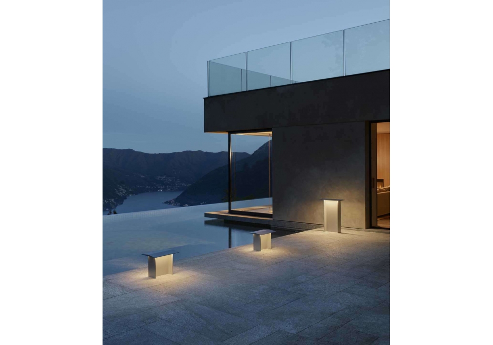 Fienile Outdoor designed by Daniel Rybakken for Luceplan is an outdoor floor lamp with anodized aluminum structure and polycarbonate screen. Available in different finishes.