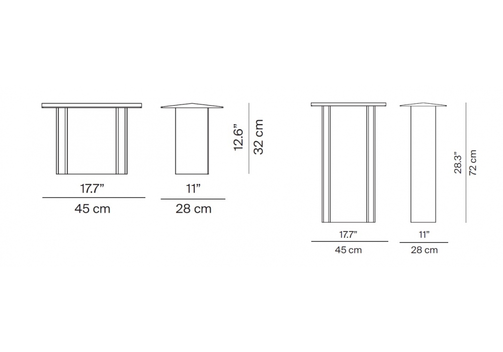 | Base | 32 x 15 x H 30 cm; 32 x 15 x H 70 cm. |