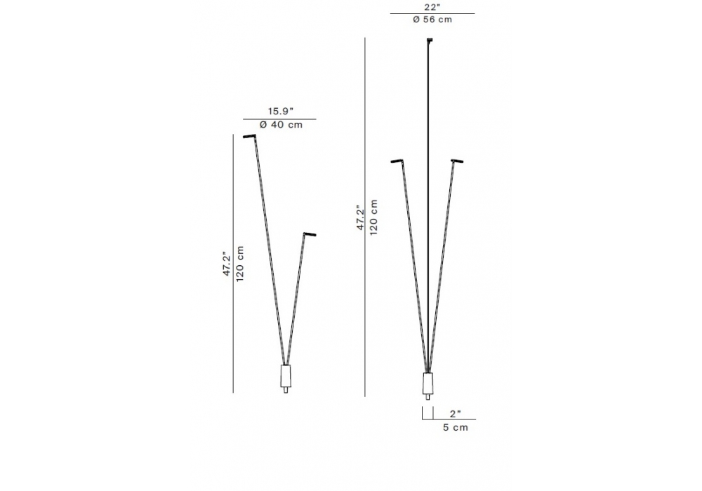 Flia designed by Alessandro Zambelli for Luceplan is a multiple floor lamp, with stems in matt black carbon fiber and aluminum diffuser. It is possible to choose between a rectangular base or a spike . Available in different versions.