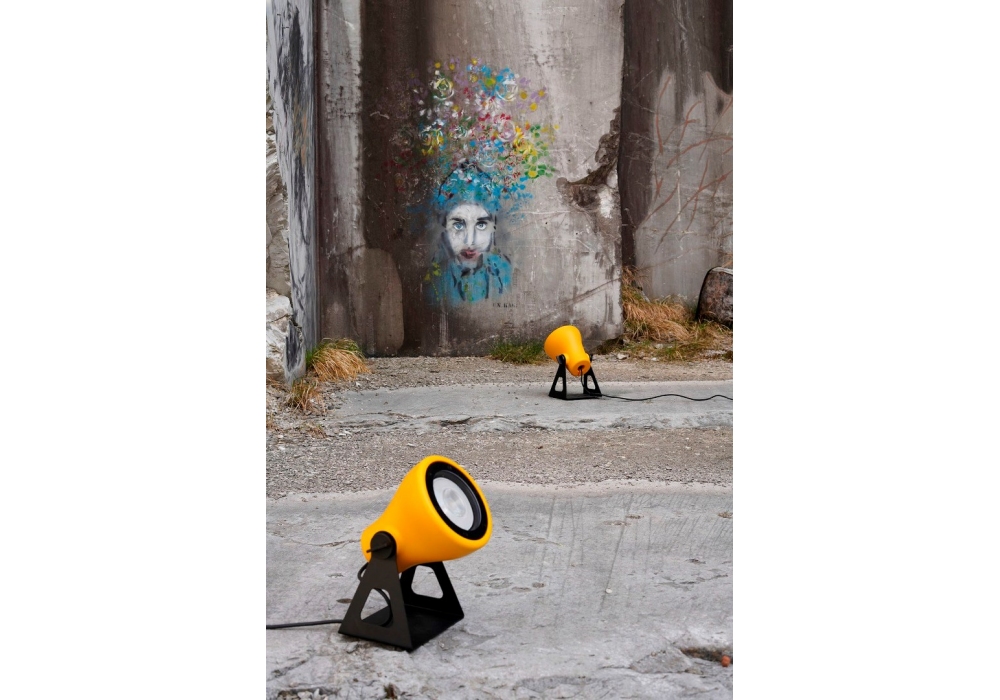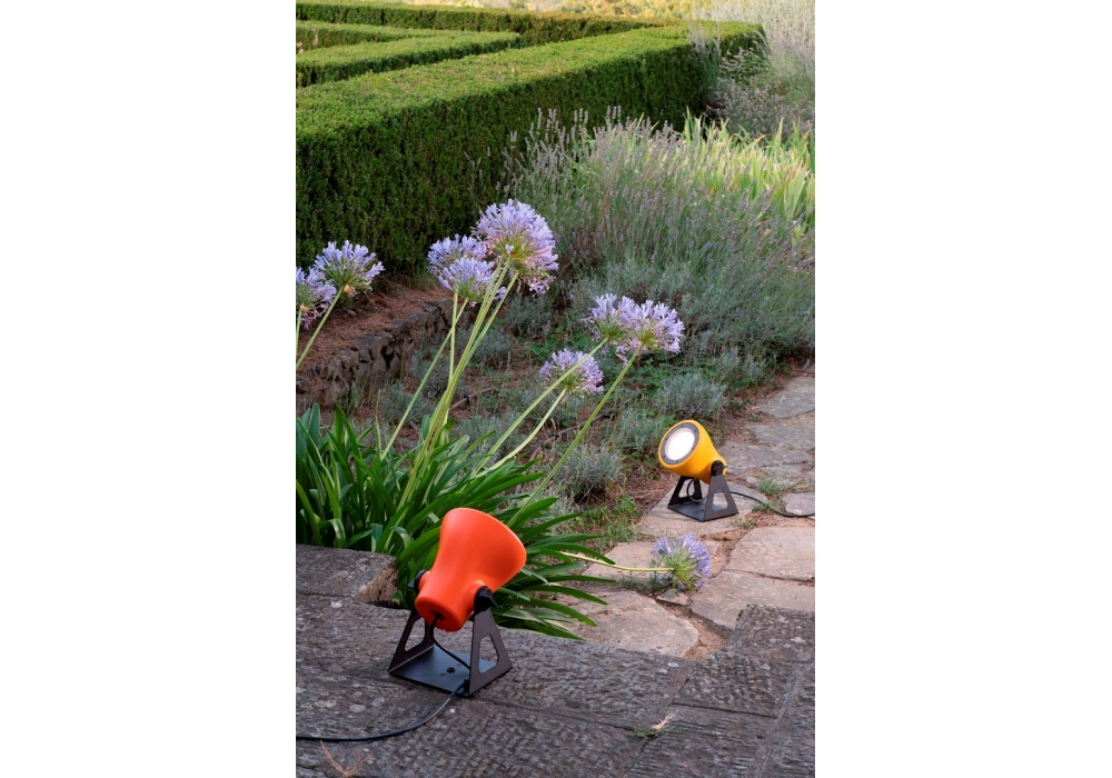 Frog designed by Emiliana Martinelli for Martinelli Luce is an outdoor floor or wall lamp structured in a combination of aluminum and painted polyethylene. The diffuser is made of polyethylene and screens a LED light source. Frog is available in different models and finishes.
