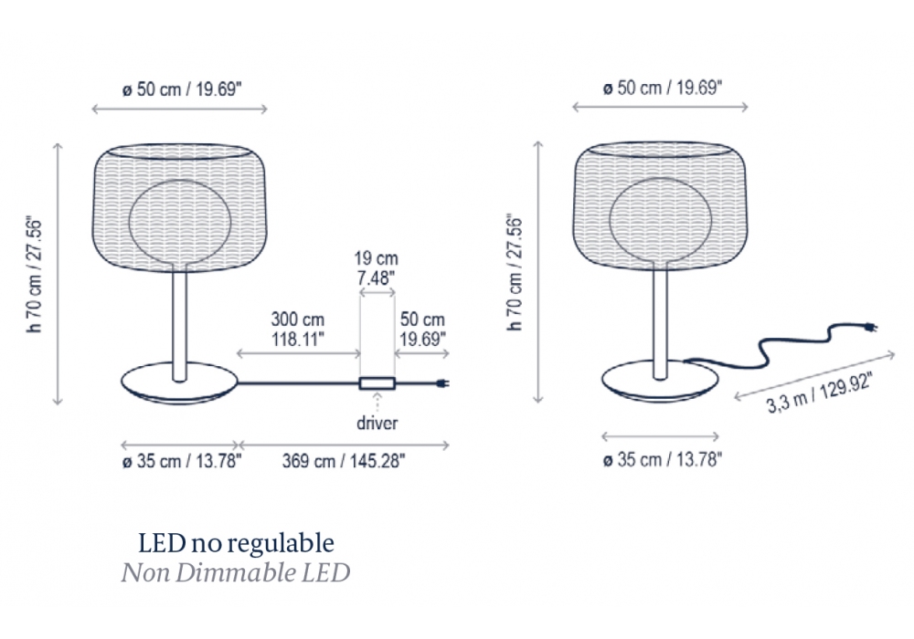 Fora designed by Alex Fernández Camps and Gonzalo Milà for Bover is an outdoor table lamp with circular base and vertical rod in painted tubular metal. The lampshade is rounded in synthetic fiber and shields a LED type light source. Fora is available in different finishes and versions.