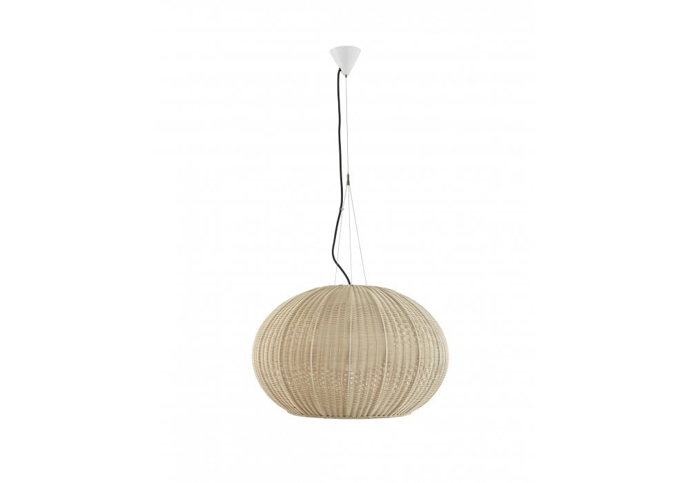 Garota 2 designed by Alex Fernández Camps and Gonzalo Milà for Bover is an outdoor pendant lamp with metal support and black neoprene suspension cable. The lampshade is rounded in synthetic fiber and shields a LED type light source with Triac or on/off dimmer system. Garota 2 is available in different finishes and versions.