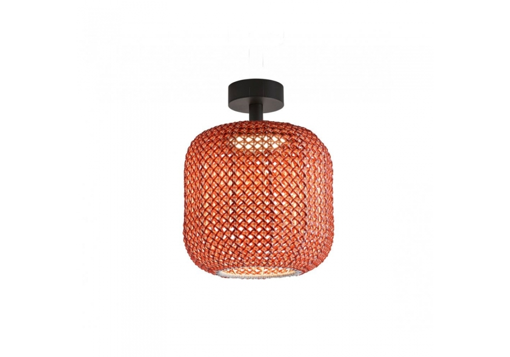 Nans designed by Joana Bover for Bover is an outdoor ceiling lamp with support and load-bearing structure in graphite brown painted aluminum and stainless steel. The lampshade has a rounded shape in synthetic fiber with a polycarbonate diffuser and shields an LED light source with a Triac dimmer system. Nans is available in different finishes and models.