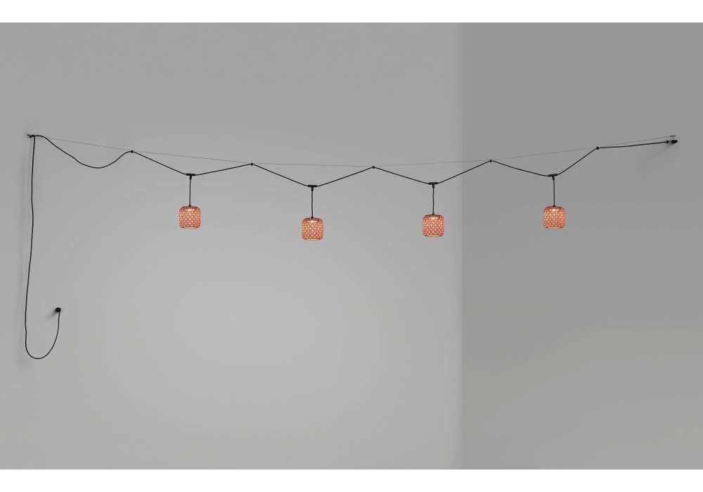 Nans Catenary designed by Joana Bover for Bover is an outdoor pendant lamp with supporting structure in stainless steel and graphite brown painted aluminum. The lampshades have a rounded shape in synthetic fiber with polycarbonate diffusers and screen LED-type light sources with a Triac dimmer system. Nans Catenary is available in different finishes.