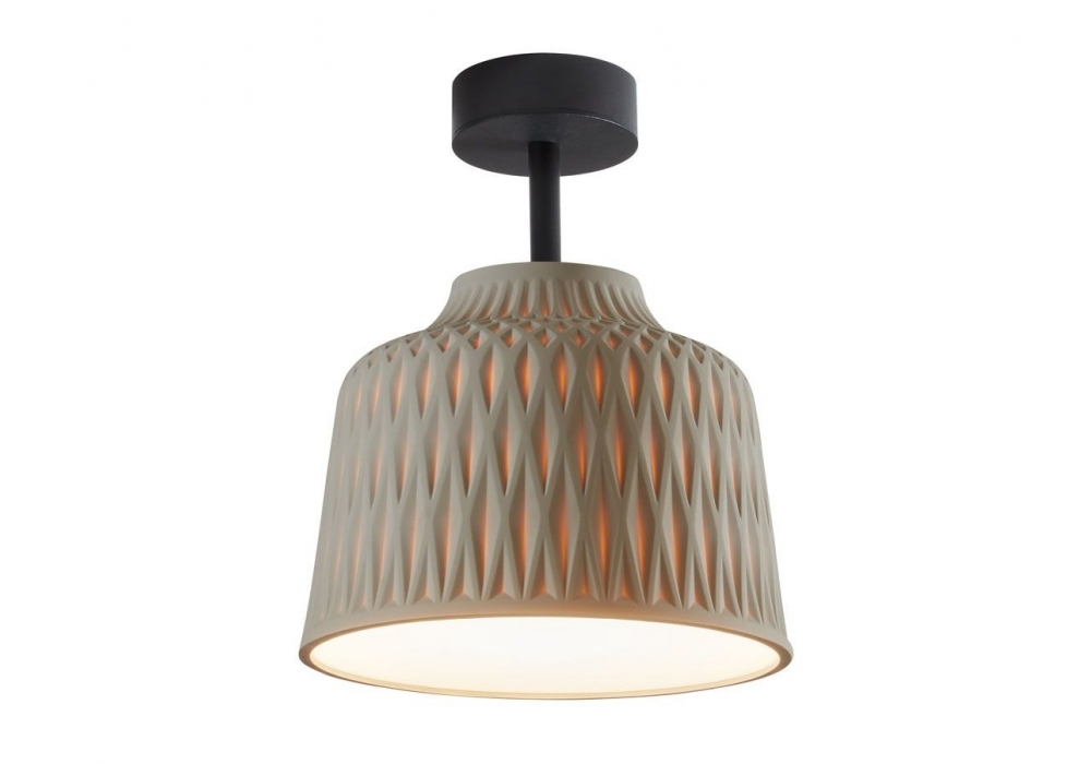 Nans designed by Joana Bover for Bover is an outdoor ceiling lamp with support and load-bearing structure in graphite brown painted aluminum and stainless steel. The lampshade has a rounded shape in synthetic fiber with a polycarbonate diffuser and shields an LED light source with a Triac dimmer system. Nans is available in different finishes and models.