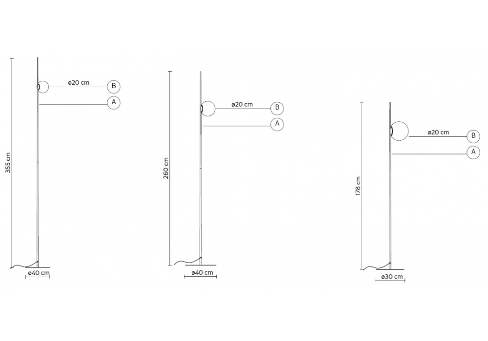 | Dimensions | • Ø 40 x H 355 cm; • Ø 40 x H 260 cm; • Ø 30 x H 178 cm; • Ø 18 x H 355 cm; • Ø 18 x H 260 cm; • Ø 18 x H 178 cm; • Ø 8 x H 355 cm; • Ø 8 x H 260 cm; • Ø 8 x H 178 cm |