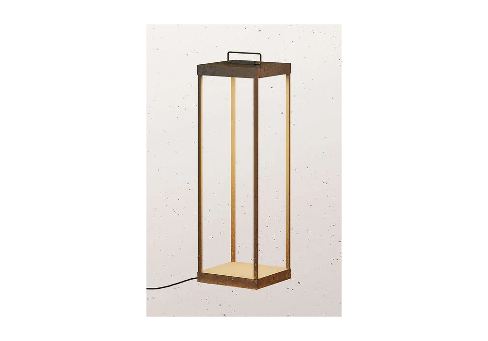 Lanterne Slim Plug designed by DT Studio for Il Fanale is a quadrangular shaped outdoor floor lamp with antique brass frame. The light source adopted is LED with a dimmable system powered by a cable with Schuko socket. Slim Plug lantern is available in different models.