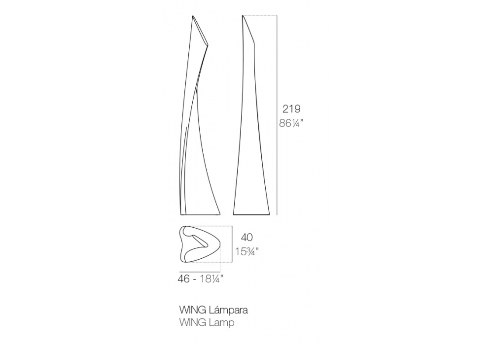 Wing designed by A-cero for Vondom is a floor lamp made of polyethylene resin by rotational molding. 100% recyclable. Item suitable for indoor and outdoor use.
