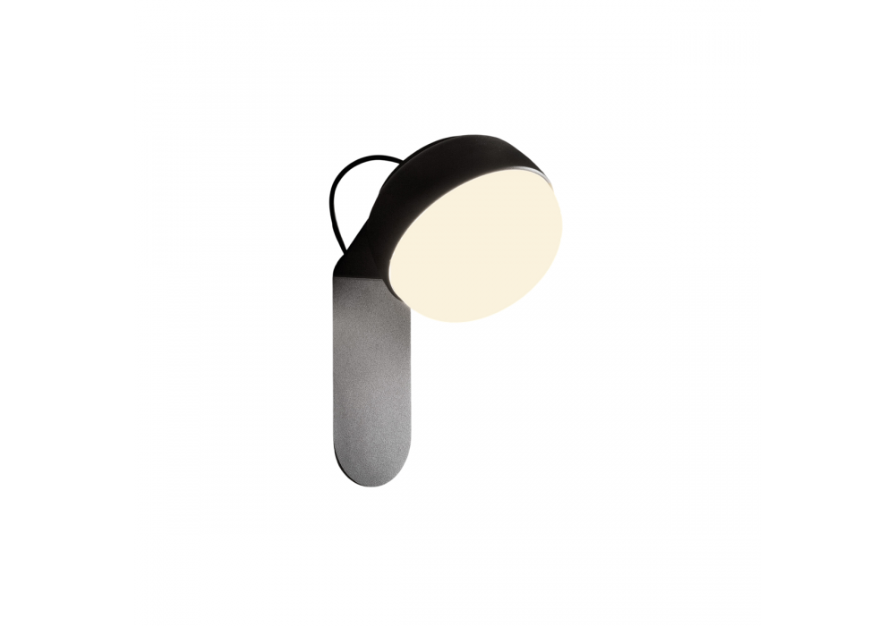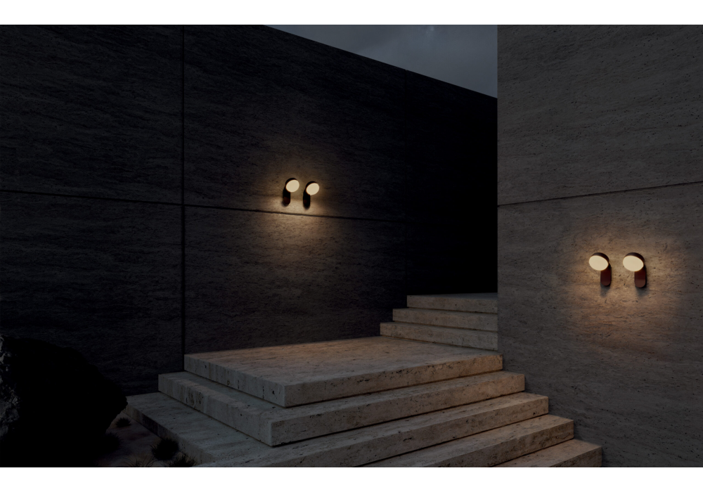 Kiki Outdoor Zest designed by Contardi is a LED wall lamp made with a black lacquered structure and white opal glass diffuser.
