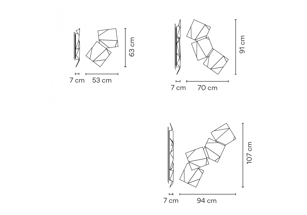 | Dimensions | 53 x 7 x H 63 cm; 70 x 7 x H 91 cm; 94 x 7 x H 107 cm; |