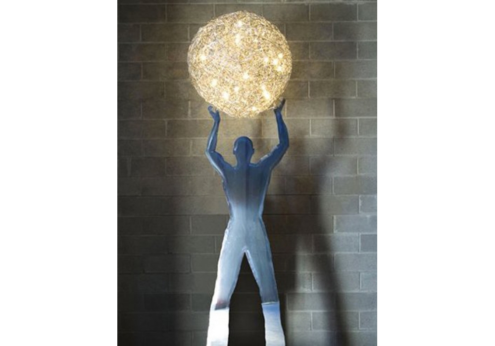 Uomo della Luce XXL IP65 is a outdoor floor lamp designed by Enzo Catellani for Catellani & Smith. It is part of the collection Fil De Fer. This lamp is made of natural aluminium wire that has been expertly sculpted and intertwined, waxed rough iron structure, lit up from within by micro bulbs.