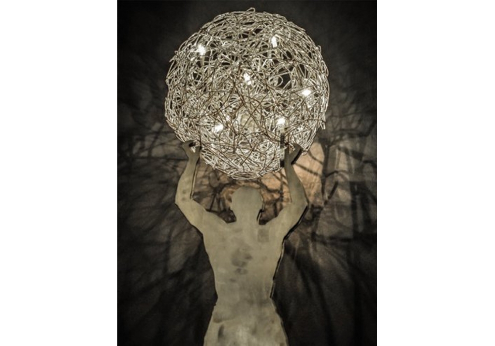 | Construction material | Structure in waxed rough iron, sphere in natural aluminum wire |