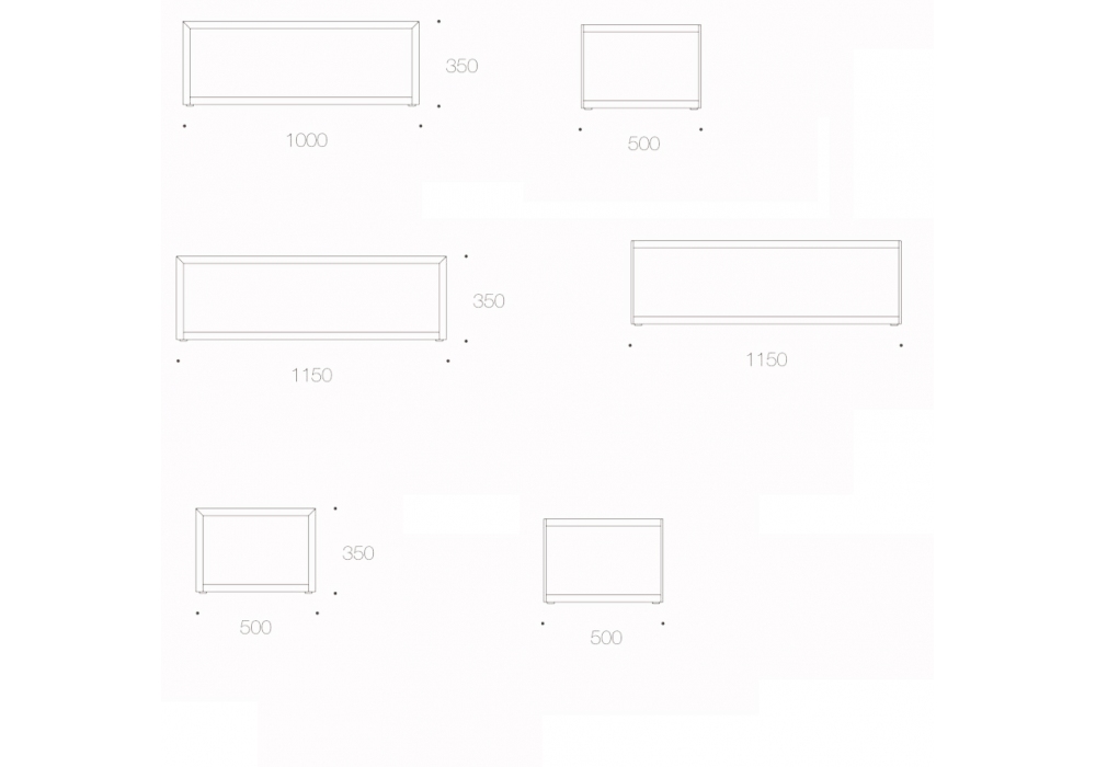 | Dimensions | 50 x 50 x H 35 cm. 100 x 50 x H 35 cm; 115 x 115 x H 35 cm. |