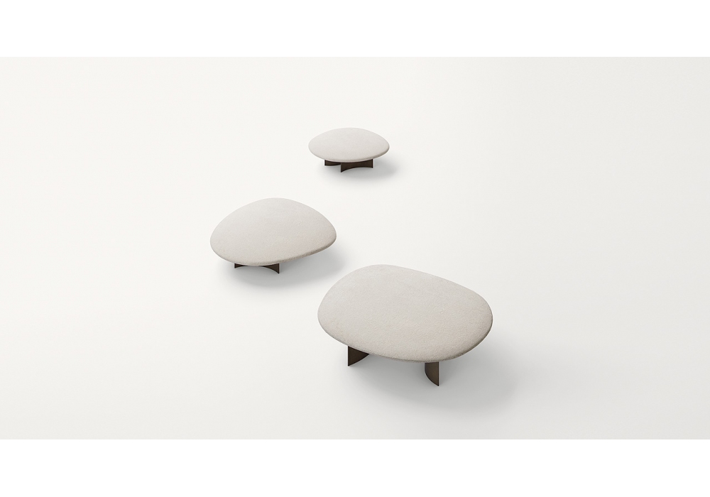 Isole Comiso designed by Marella Ferrera for Paola Lenti is a coffee table with base in matt brown painted steel and irregularly shaped top in Pietra di Comiso. The embossed varnishing of the base is handcrafted by De Castelli. Available in three models.