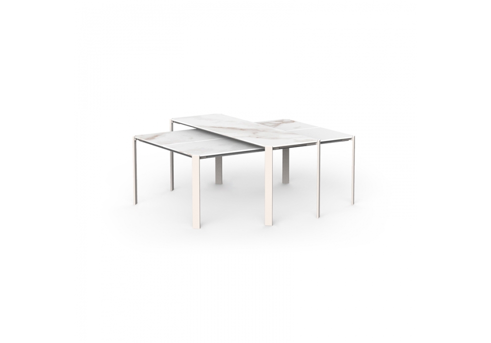 Tablet designed by Ramón Esteve for Vondom is a coffee table with aluminum legs and an HPL top. Available in various finishes and dimensions.