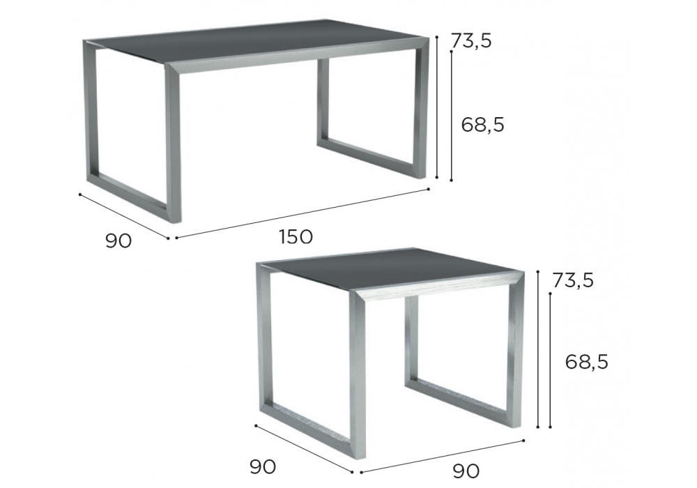 | Dimensions | 90 x 90 x H 73,5 cm; 150 x 90 x H 73,5 cm |
