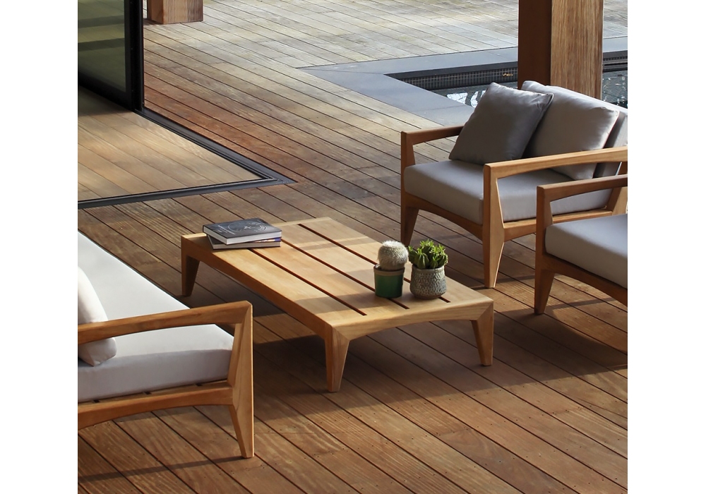 Zenhit lounge designed by Kris Van Puyvelde for Royal Botania is a coffee table made with teak structure.