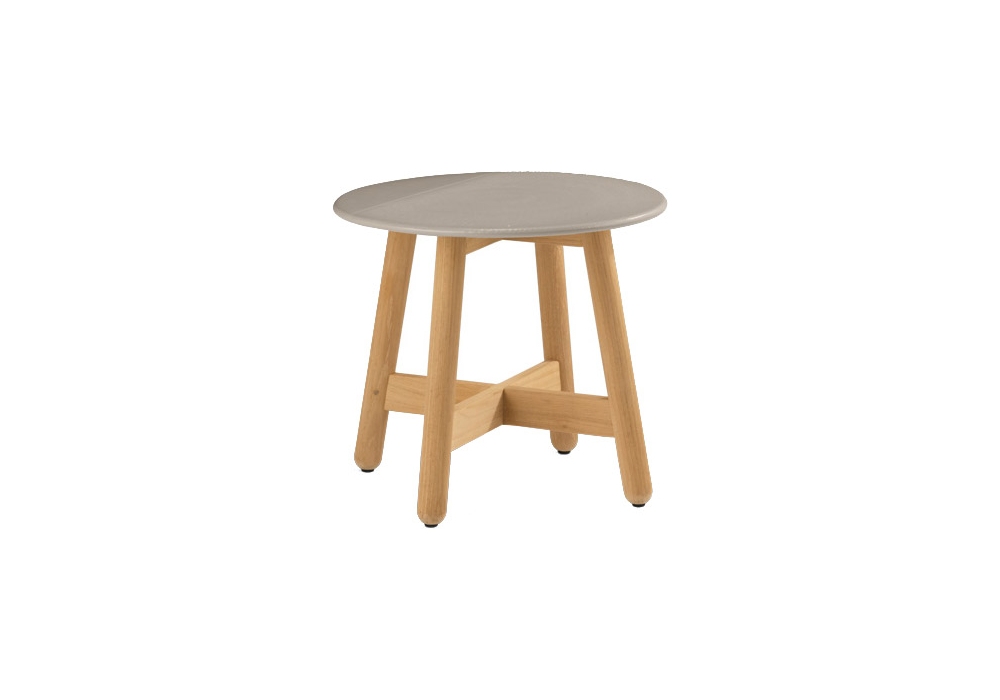 The Mbrace collection designed by Sebastian Herkner for Dedon comes in a mix of materials. The side table is in a teak base with a ceramic tabletop available in 3 finishes and 2 dimensions.