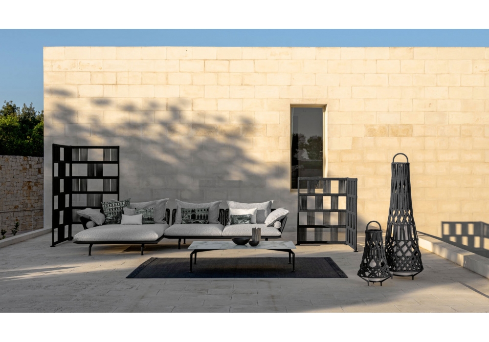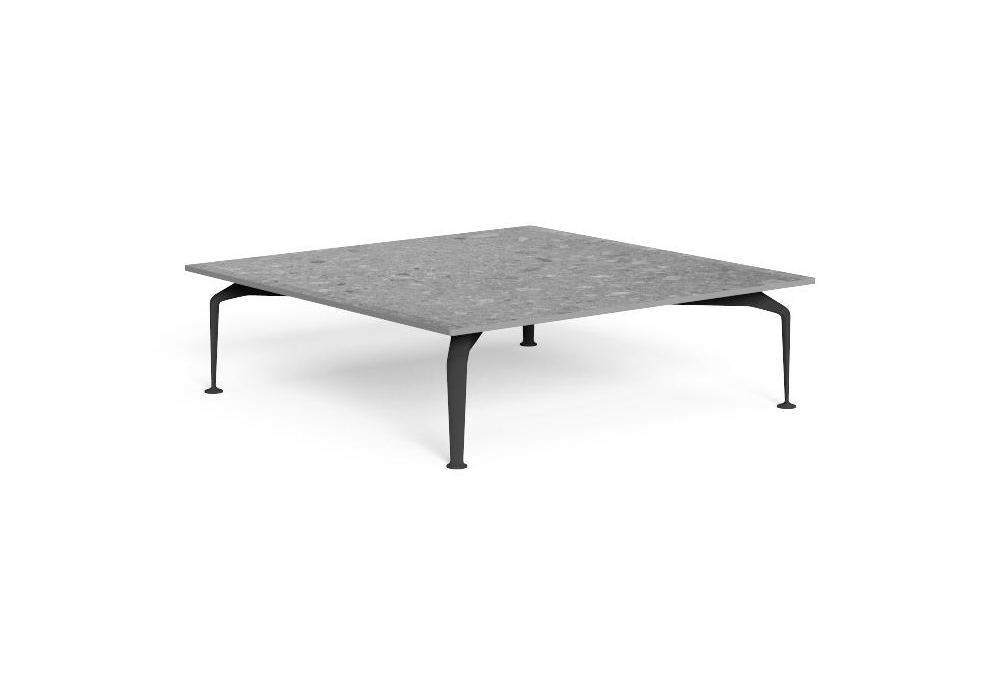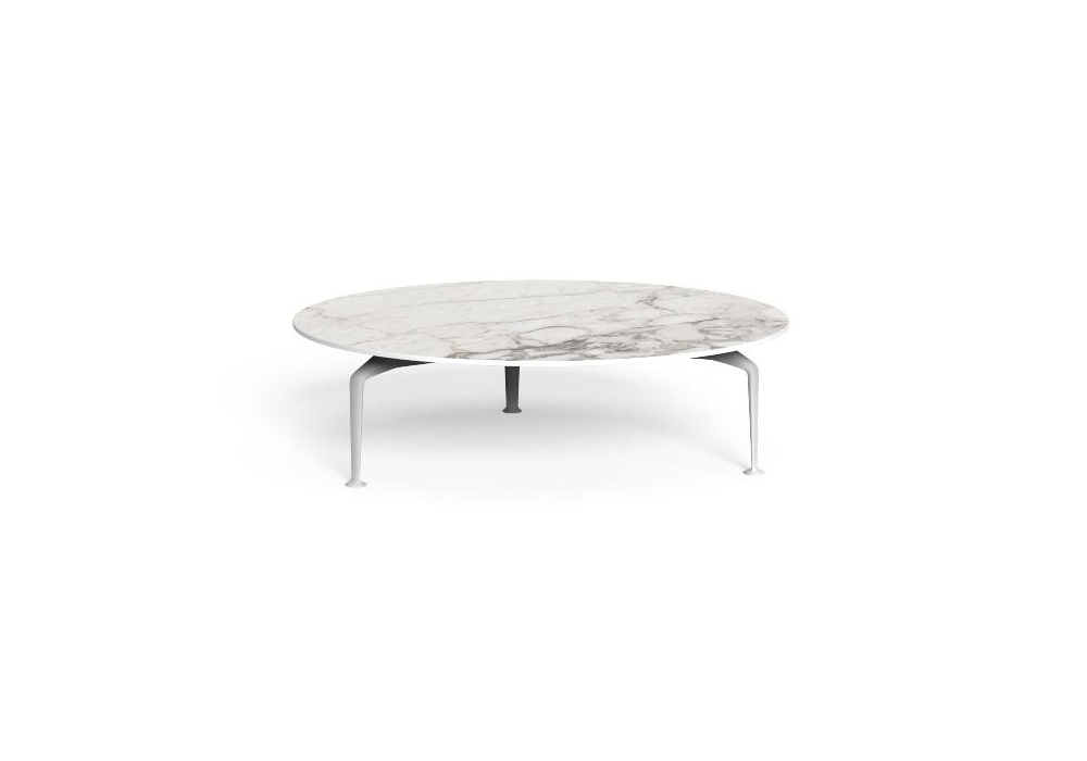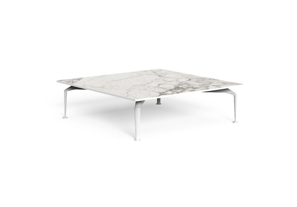 Cruise Alu designed by Ludovica and Roberto Palomba for Talenti is a coffee table with aluminum structure in three finishes, white, graphite or aqua green and stoneware top in the 12 mm calacatta finish.