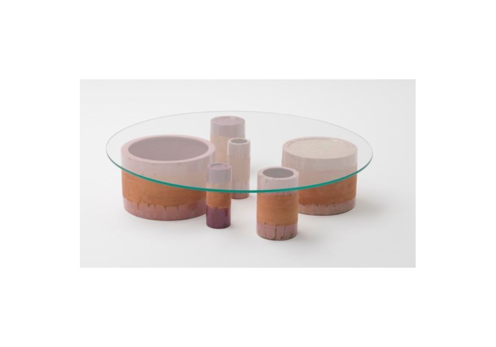 Cerchi designed by Nicolò Morales for Paola Lenti is a coffee table with transparent extralight tempered glass top, available round or square. The base is made up of cylindrical elements in majolica of different sizes, available in two color finishes and hand-decorated by the master Nicolò Morales, with exclusive colors.