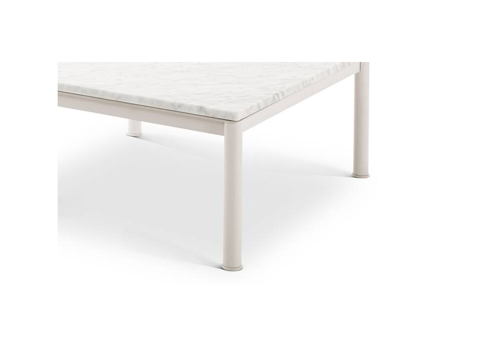 10 Table en Tube Basse, Grand Modèle, Outdoor designed by Le Corbusier, Pierre Jeanneret, Charlotte Perriand for Cassina is a square coffee table made with Carrara marble top and painted structure.