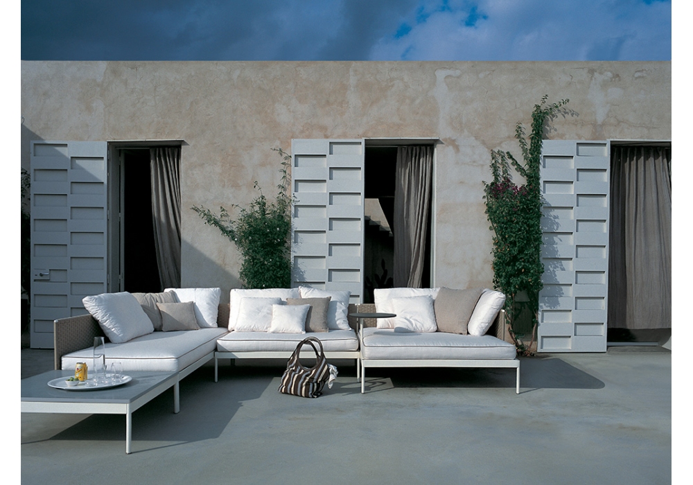Basket designed by Gordon Guillaumier for Roda is an outdoor coffee table composed of stainless steel structure and stone or HPL top. It is available in two sizes.