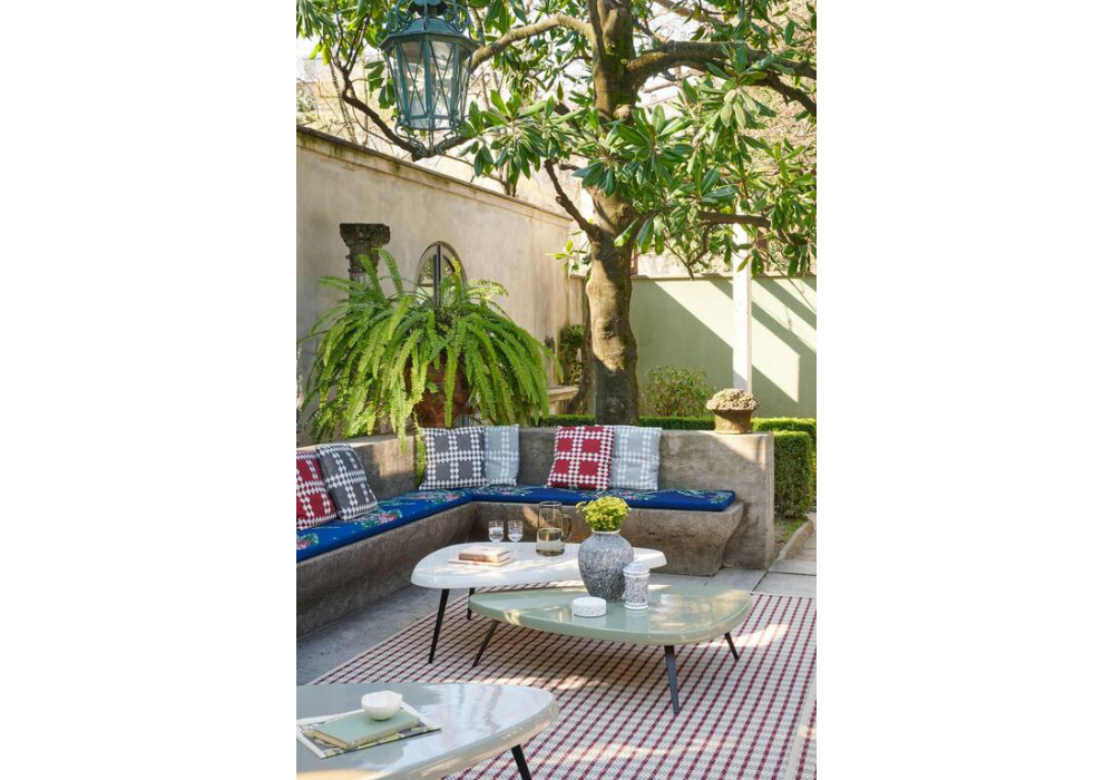 541 Mexique Outdoor designed by Charlotte Perriand for Cassina is a coffee table made with matt lacquered or glazed procellanated stoneware top and matt black painted stainless steel legs. Available in different finishes and dimensions.