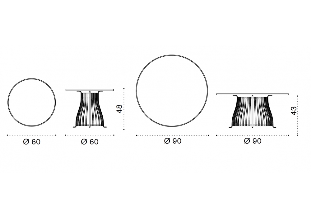 | Dimensions | Ø 60 x H 48 cm; Ø 90 x H 43 cm. |