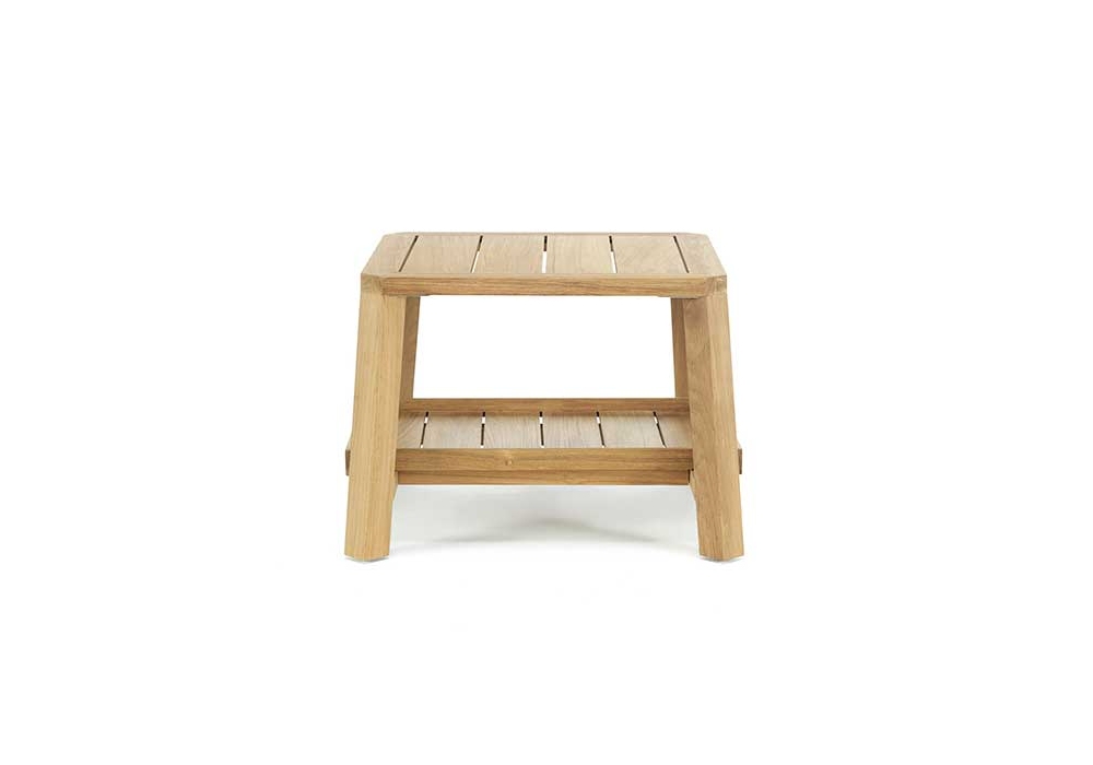 Petit Club produced and signed by Ethimo is a coffee table entirely structured in natural and pickled teak. Petit Club is available in different finishes and sizes.