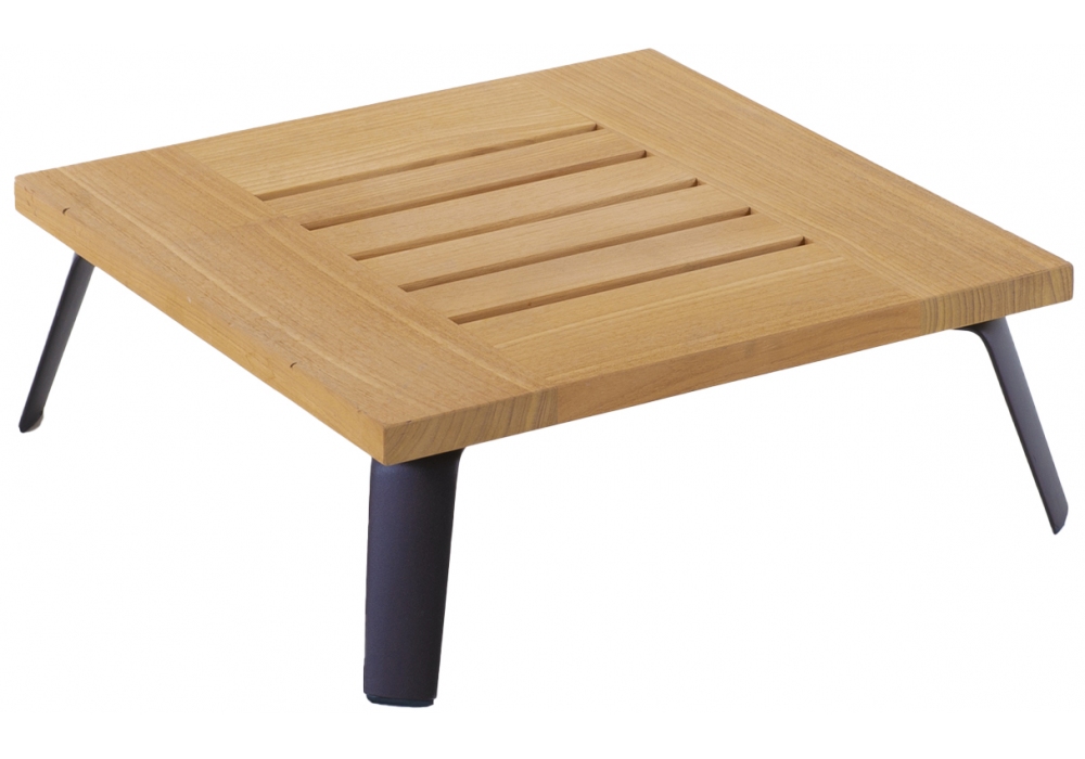 Welcome designed and produced by Unopiù is a quadrangular outdoor coffee table with teak top and aluminum feet. Welcome is available in different models.