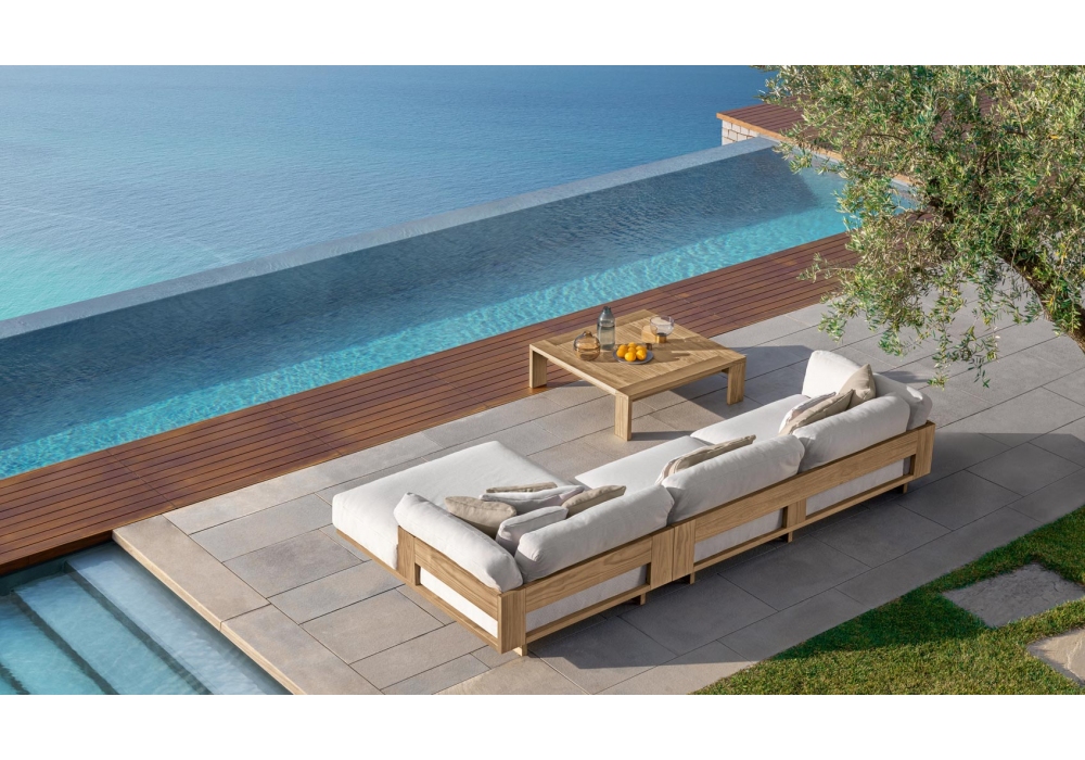 Argo Wood designed by Ludovica + Roberto Palomba for Talenti is an outdoor coffee table made of accoya wood structure in rosewood or natural teak colours. Available in several dimensions.