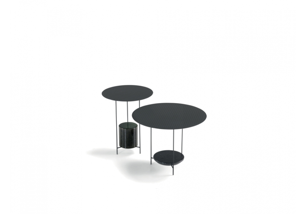 Panna Cotta Outdoor designed by Ron Gilad for Molteni&C is a side table made with painted metal structure and lava stone counterweight.
