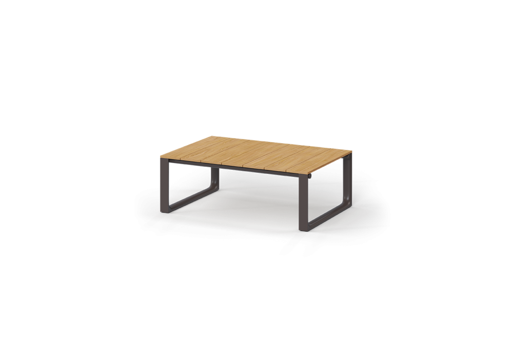 Tulum designed by Eugeni Quitllet for Vondom is a coffee table made with metal structure and teak wood top. Suitable for both indoor and outdoor use, highly resistant to various weather conditions.