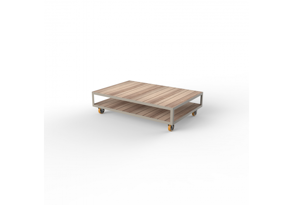 Vineyard designed by Ramón Esteve for Vondom is a coffee table made with aluminum structure and wooden tops. Available with wheels or with legs.