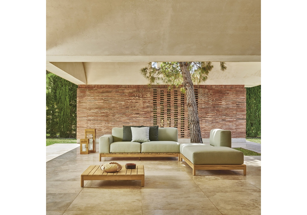 Barcode designed by Alessandro Dubini for Varaschin is a coffee table with structure in certified plantation teak. Available in two sizes.