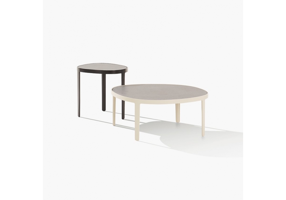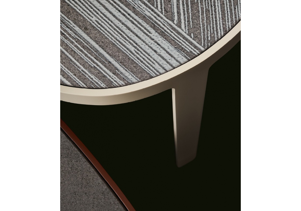 Mad Out designed by Marcel Wanders for Poliform is a coffee table with matt painted aluminum structure and lava stone top, also available with cast glass decoration.