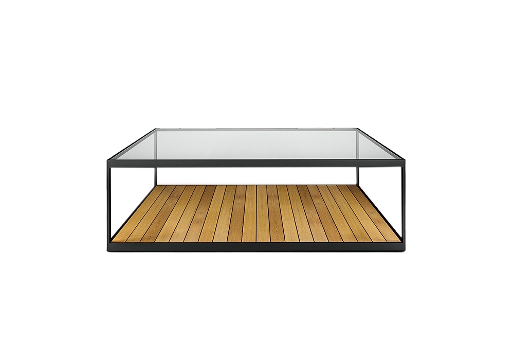 Garden Moore designed by Broberg & Ridderstråle for Röshults is a coffee table with structure in anthracite stainless steel and teak. Available in different versions.