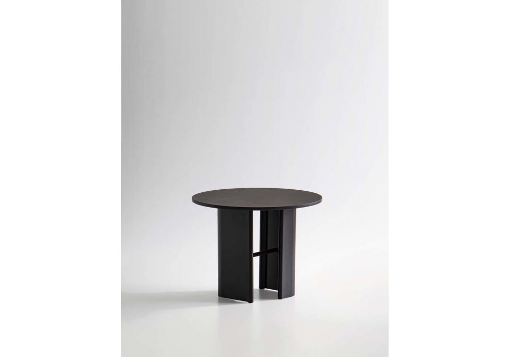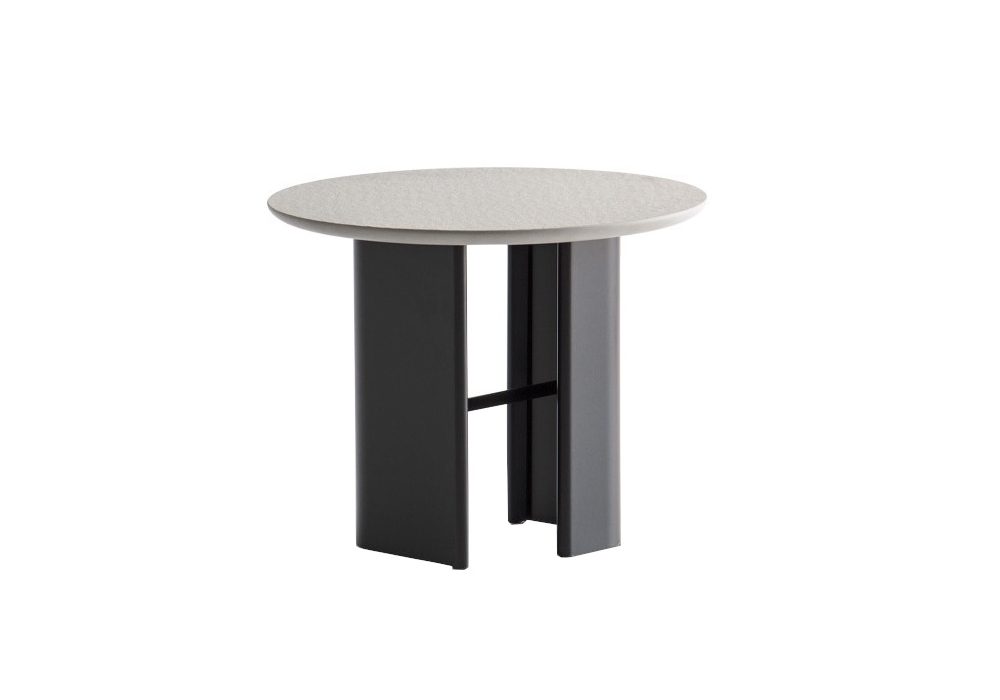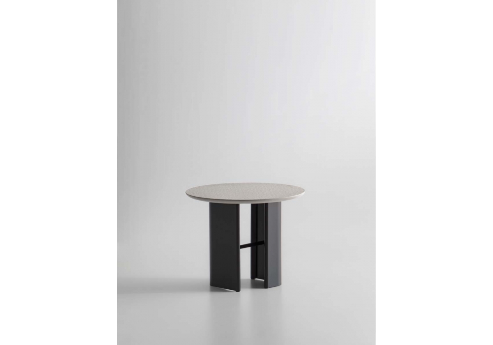 Double L Outdoor designed by Chiara Andreatti for Potocco is an outdoor side table with circular top in stoneware or natural stone and base in epoxy powder coated steel sheet with embossed black finish.