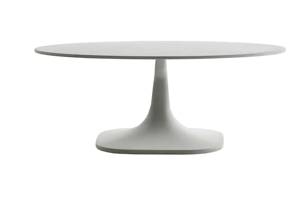 Pushpam designed by Naoto Fukasawa for B&B Italia Outdoor is a coffee table made of concrete (Ultra High Performance Concrete) in white or greige finish. Attachment plate in galvanized sheet metal and tips in plastic material. Available in the square or round version.
