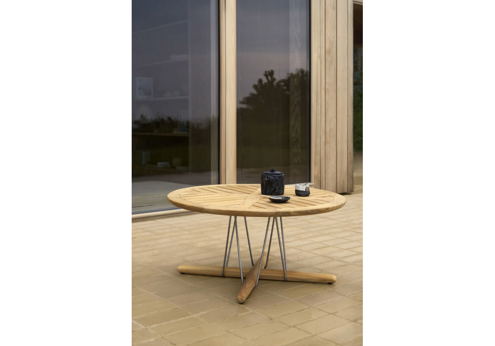 E023 Embrace designed by Eoos for Carl Hansen & Søn is an outdoor coffee table with top and base in solid untreated Teak wood. Stainless steel frame.