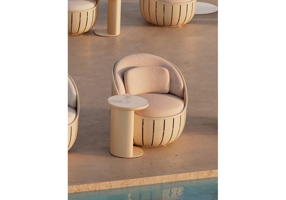 Arena C designed by Søren Rose for Gandia Blasco is a side table in thermo-lacquered aluminum slats, primarily designed for outdoor spaces but thanks to the functionality it is also ideal for indoor use. Available in different finishes.