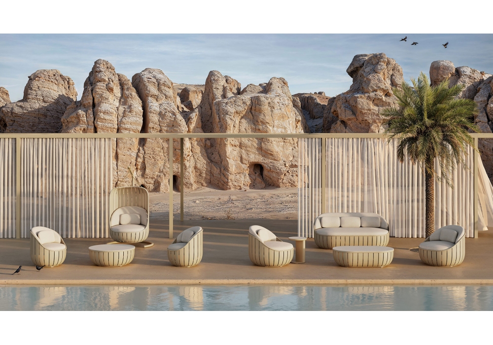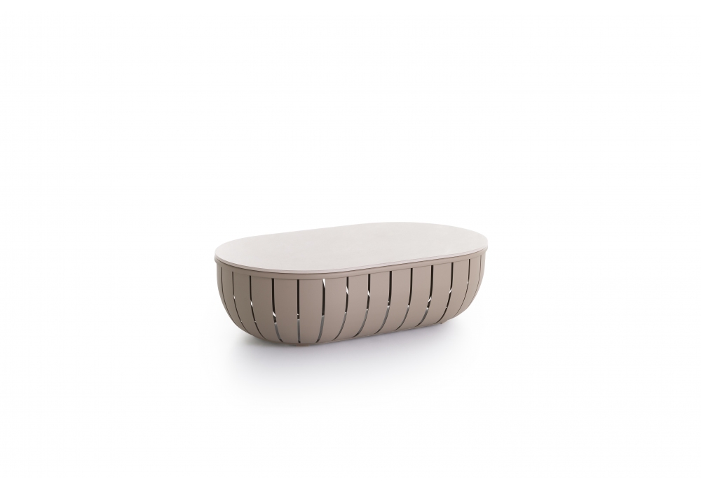 Arena Coffee Table designed by Søren Rose for Gandia Blasco is made in thermo-lacquered aluminum slats and features a top made of a special porcelain material for outdoor use. Available in different finishes.