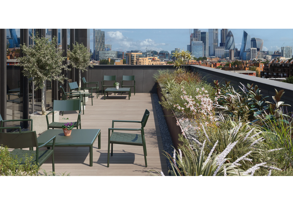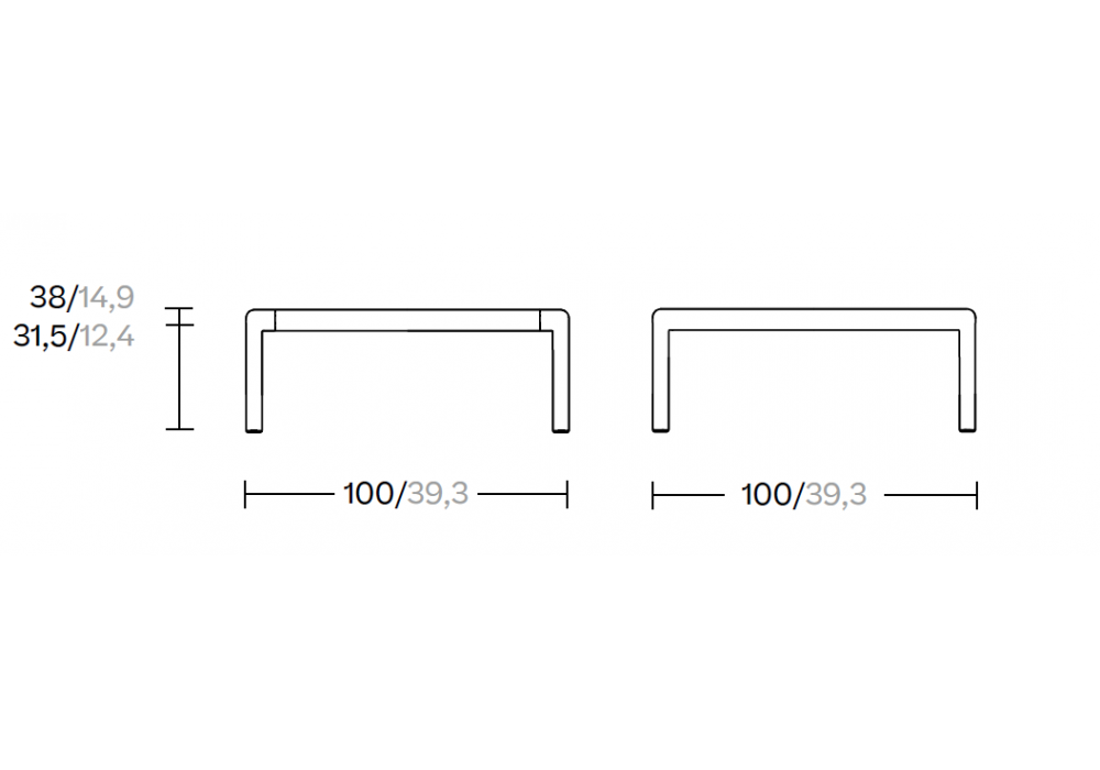 Passage Outdoor designed by Ronan Bouroullec for Kettal is an outdoor coffee table with a metal frame in a glossy or textured finish. The top matches the textured finish frame.